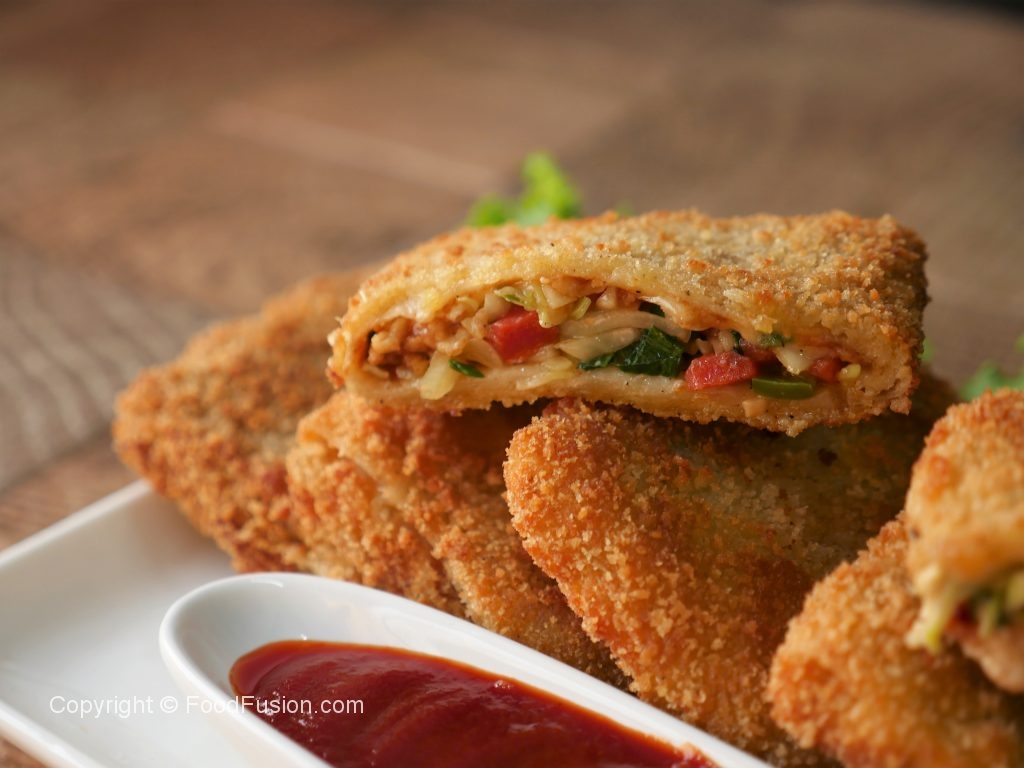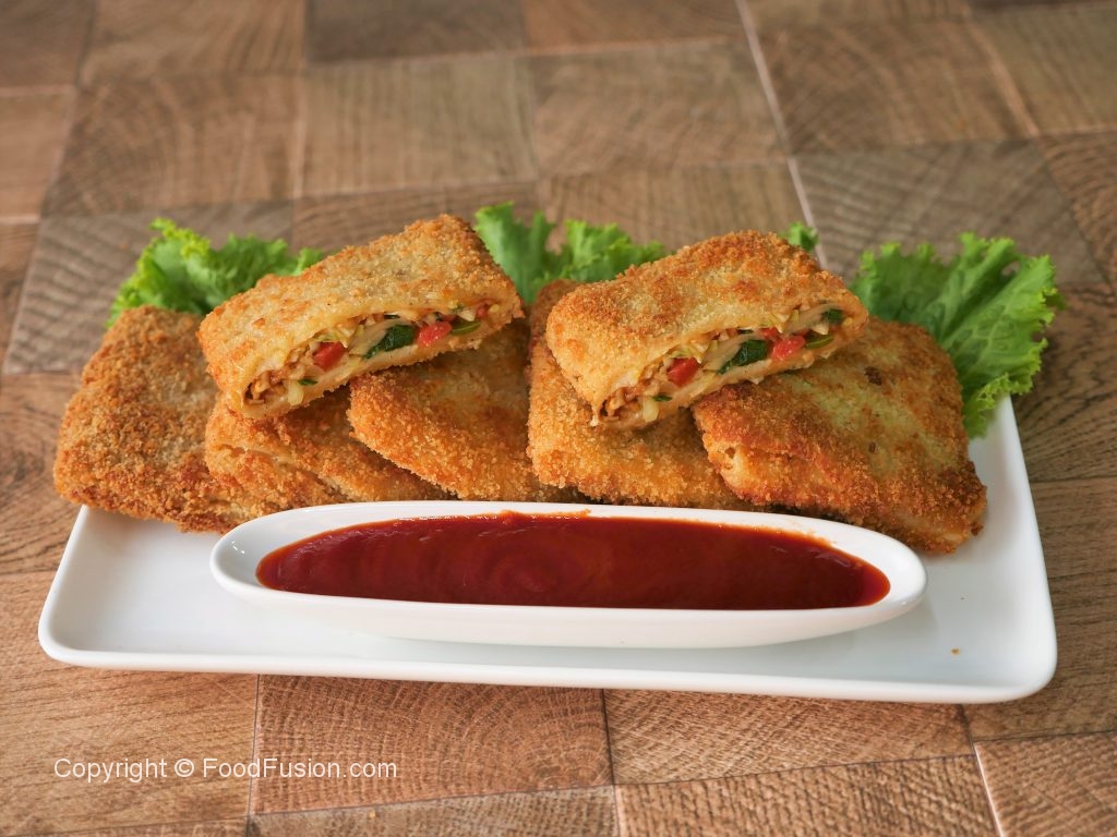 BBQ Sauce dal ker pheela lein,mozzarella cheese,cooked vegetables ko bech mein rakh dein aur upper wali side ko filling ka upper fold ker lein.