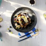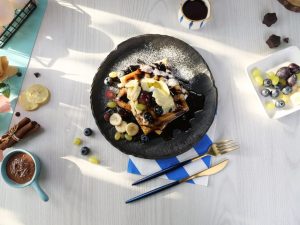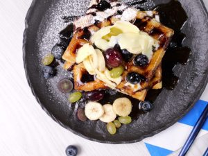-On waffles,sprinkle sugar & drizzle chocolate syrup.