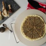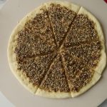 Grease dough with olive oil,cover and let it rest for 1 hour (warm place).