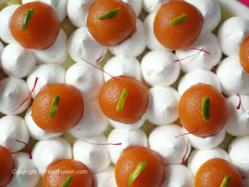 -Garnish with whipped cream,gulab jamun,pistachios,saffron & serve!